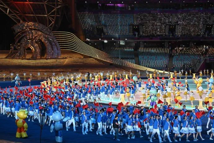 9月23日,錢塘江畔,第19屆亞運會在杭州奧體中心正式拉開帷幕,“大蓮花”正在盛放。